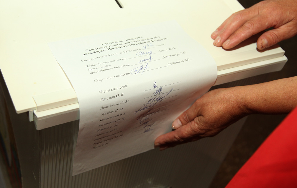 Как рассказала председатель Жанна Камок, работа комиссии стартовала в 7.30. В 7.45 приступили к опечатыванию урн: для голосования 9 августа и для голосования по месту нахождения избирателя. Сделали это под пристальным вниманием наблюдателей и всех членов комиссии. И вот часы показали 8.00. Первые голосующие не заставили себя долго ждать.