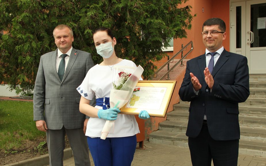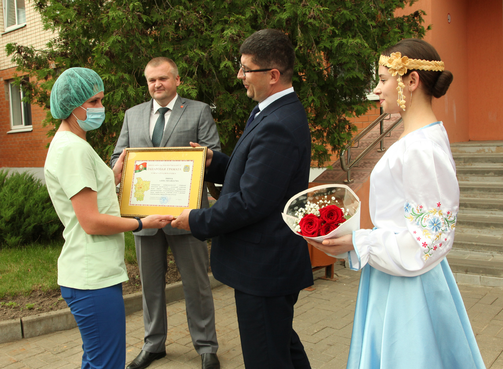 Почетной грамотой Миноблисполкома награждены медицинская сестра инфекционного отделения Оксана Бухал; врач-педиатр Людмила Лыч; старшая медицинская сестра-анастезист отделения анестезиологии и реанимации Елена Пинчук; врач общей практики Ольга Романович.