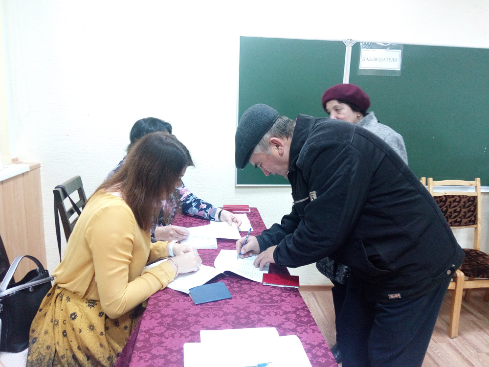 В 08.10 на участке уже встречают первых избирателей — супруги Анохины говорят, что не могли остаться в стороне от такого важного события в жизни страны.