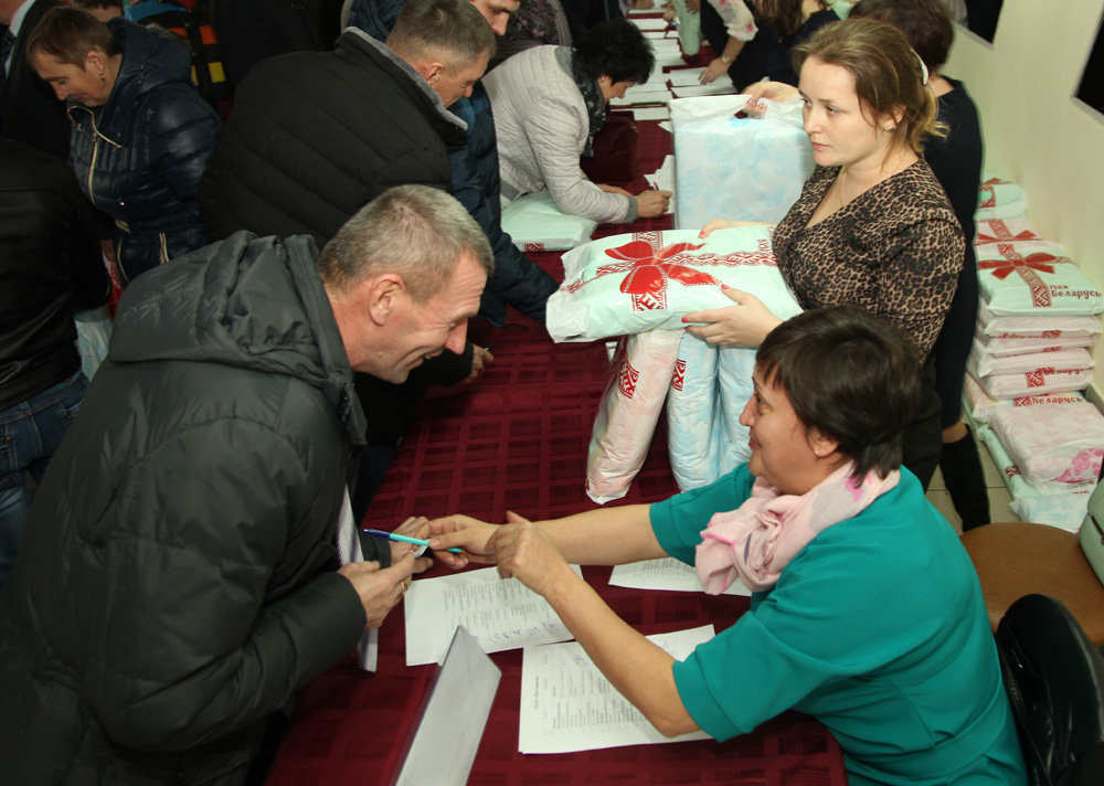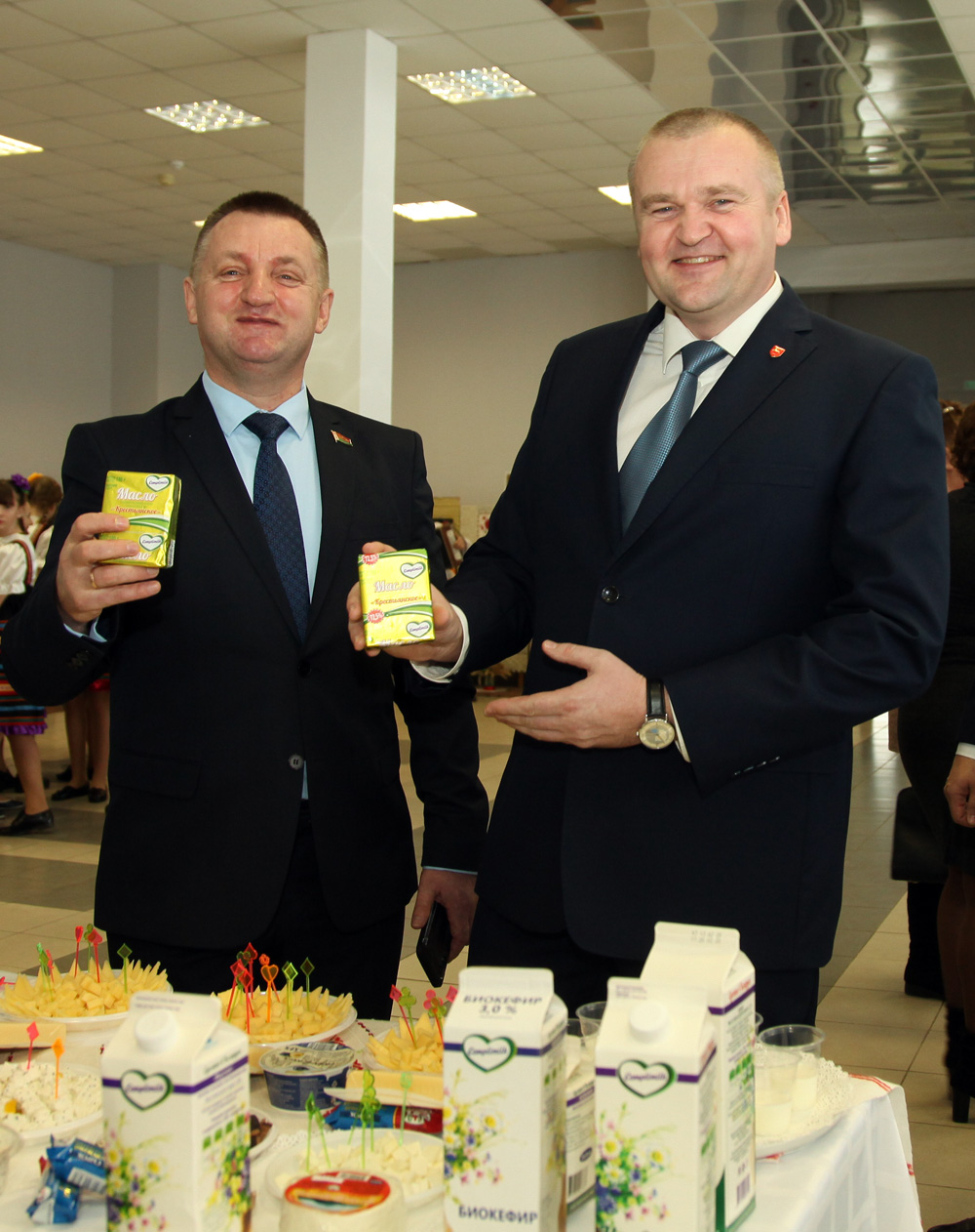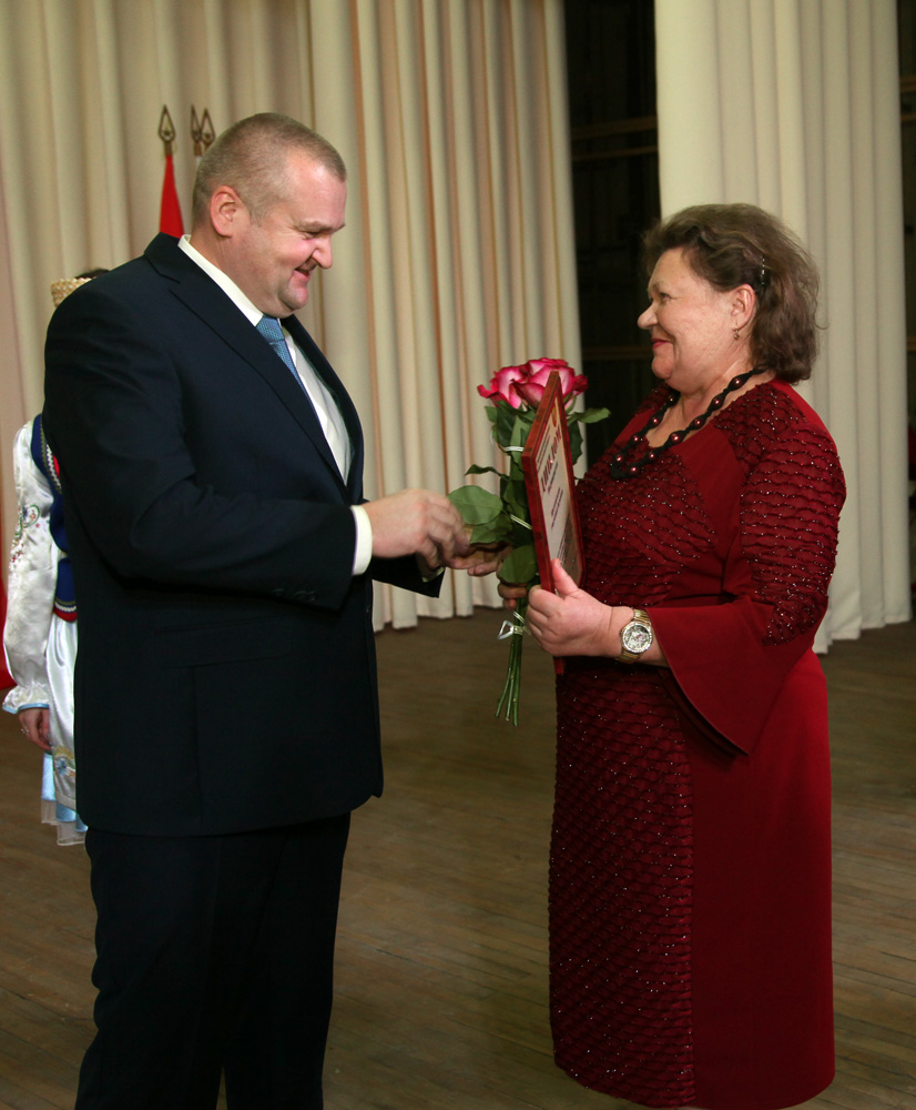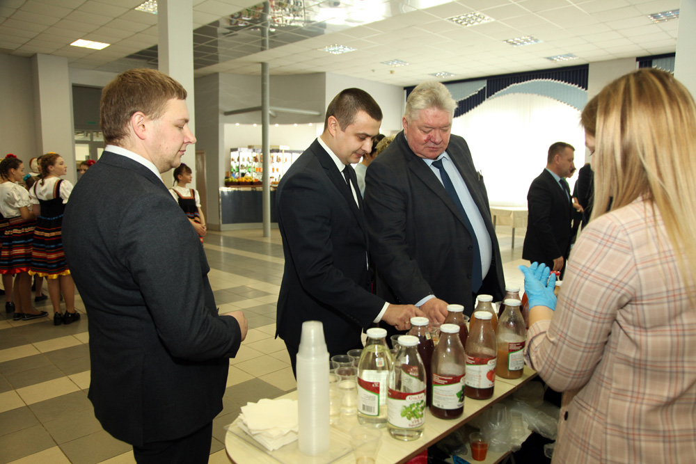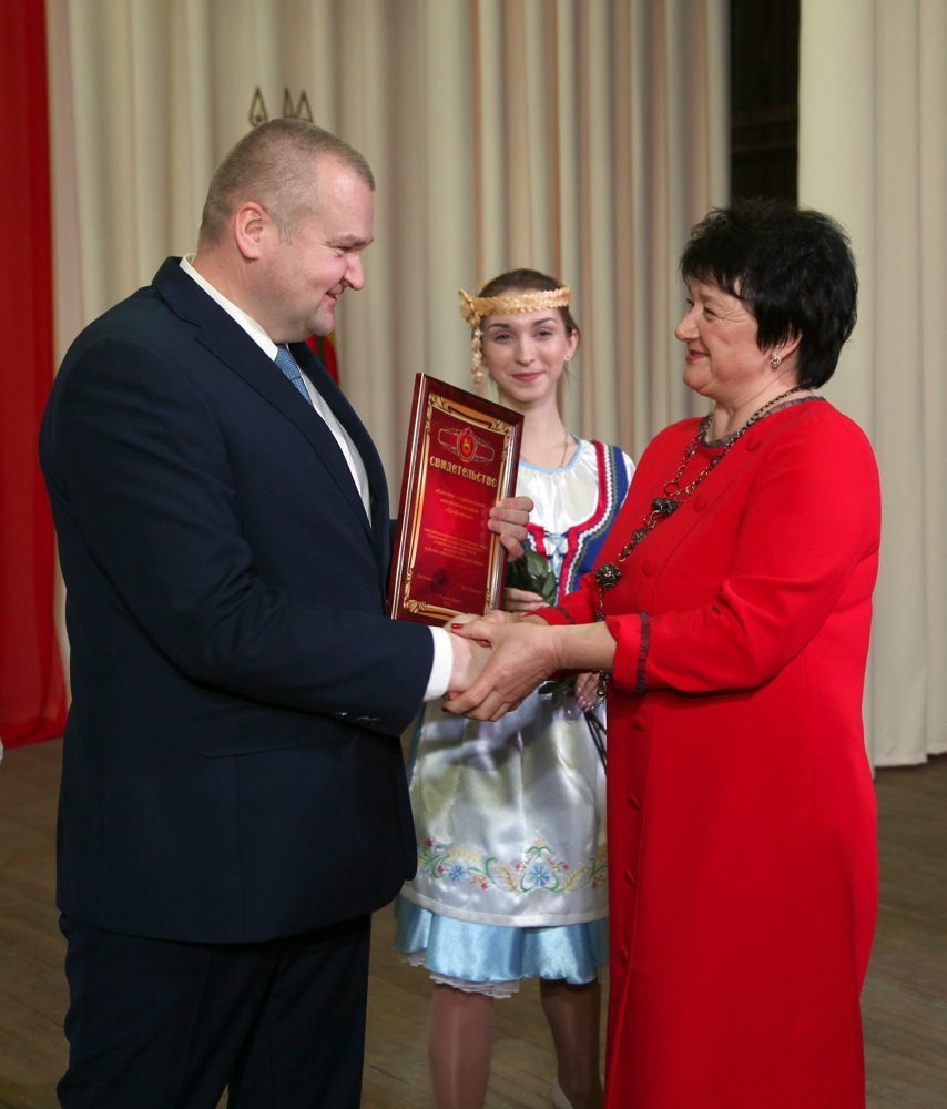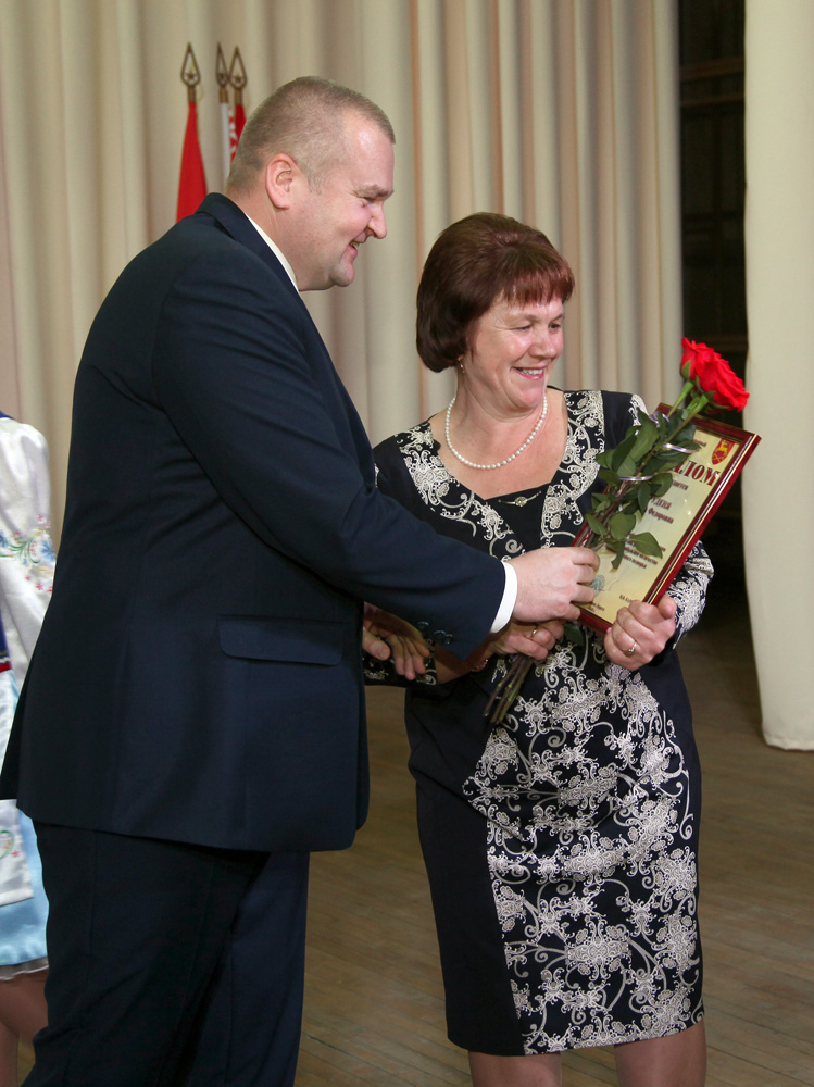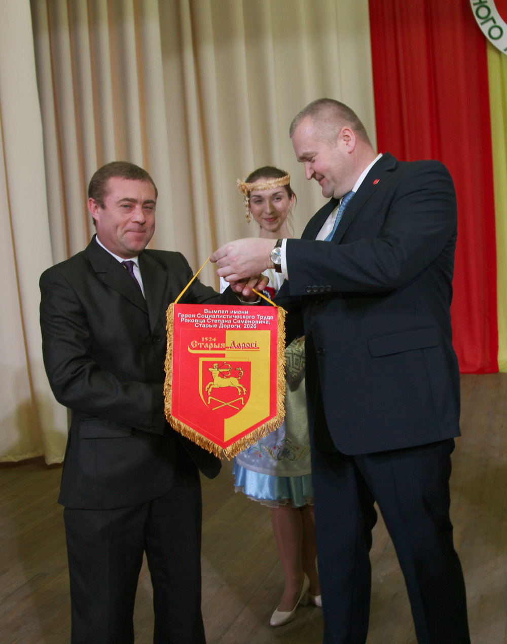 Каравай — символ процветания района — вручили председателю районного исполнительного комитета Николаю Карповичу.