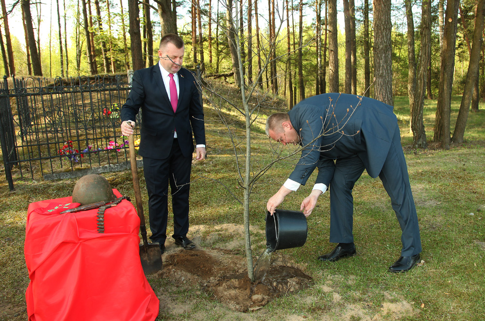 В праздничный день возле братских могил были высажены дерево Мира и дерево Памяти.